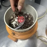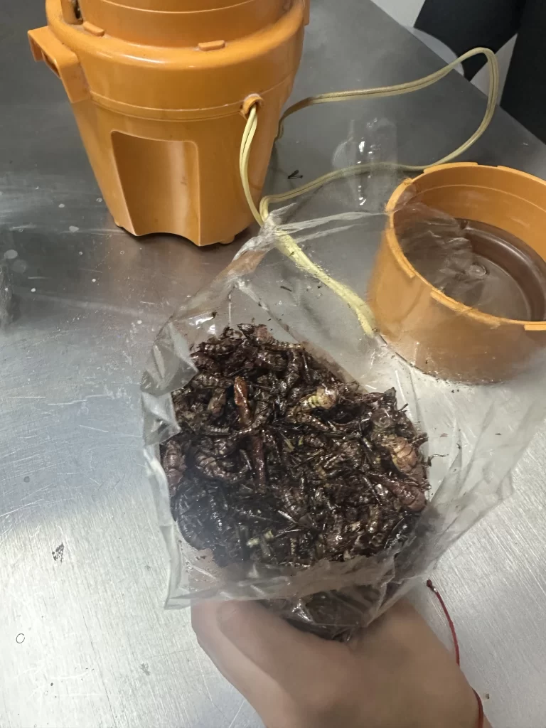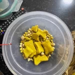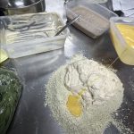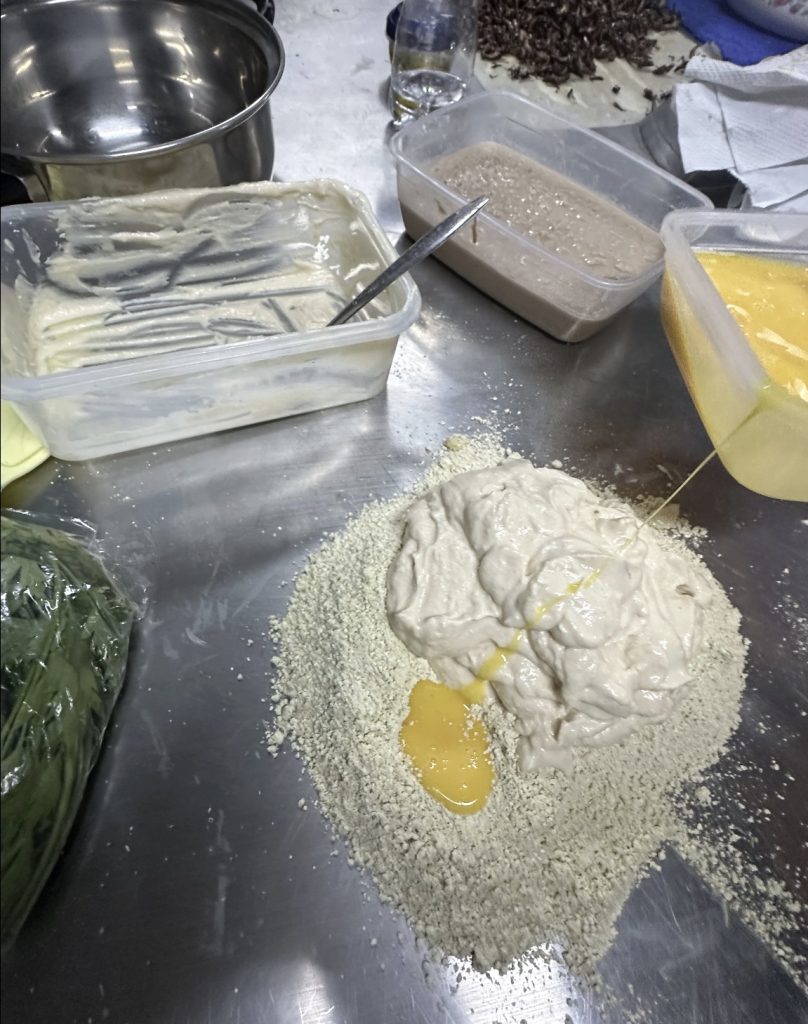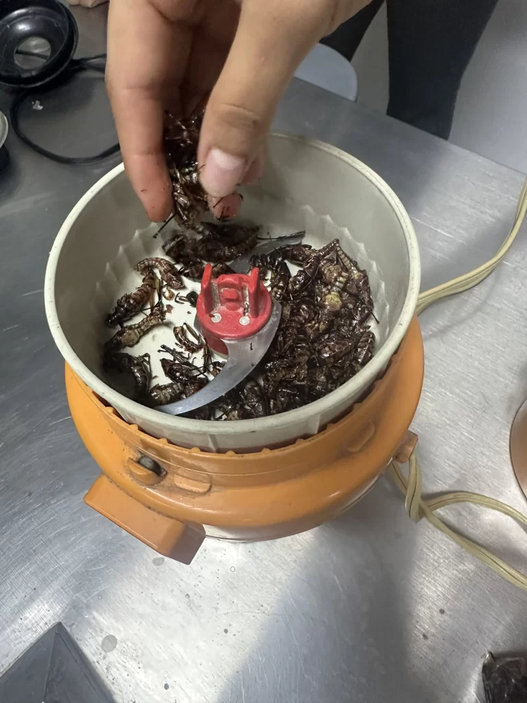 Posteriormente se realizaron cuatro mezclas, en todas se incluía zanahoria, calabaza, huevo, agua, aceite, harina de avena, cúrcuma, vitamina C y perejil. La diferencia entre cada mezcla fue la proteína que se le agregó (pollo, carne, grillo, vegetariana). Imagen 1.