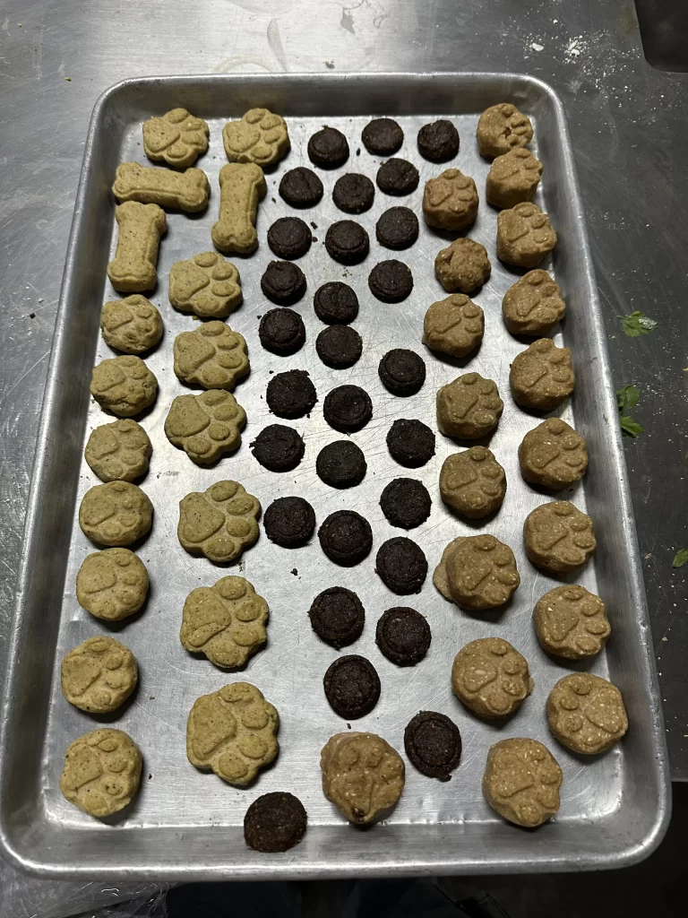 Todos los ingredientes se mezclaron hasta realizar una masa homogénea, la cual se colocó en los moldes para elaborar croquetas y premios para perro. Se hornearon a 180ºC garante 25-30 minutos. Se sacaron del horno y se dejaron enfriar para realizar las pruebas. Imagen 2