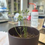 Sembrar una semilla de lenteja por maceta, a ~1.5 cm de profundidad en el centro. (Véase Apéndice #2).