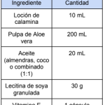 Es posible generar una mezcla homogénea entre la calamina y el Aloe vera utilizando lecitina como agente emulsionante. Por las propiedades de la calamina y el Aloe vera, dicha mezcla tendrá propiedades antiinflamatorias, humectantes y antipruríticas.