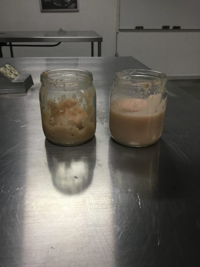 5.- Envasado del producto. Una vez que se formara la mezcla, se procedió a envasar en recipientes de vidrio con tapa metálica para su conservación. Los recipientes fueron esterilizados previamente primero lavándolos con agua y jabón y después colocándolos en agua hirviendo durante 10 minutos.