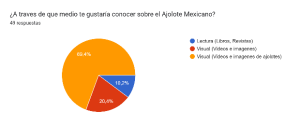 En nuestra población encuestada el 90% quisiera aprender sobre los ajolotes a través de videos e imágenes.