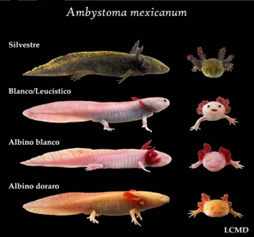 El ajolote (Ambystoma mexicanum), o axolotl, es un anfibio endémico de los canales del lago Xochimilco, ubicado en el centro de Ciudad de México. En esta especie no ocurre la metamorfosis de manera natural, por lo que se mantiene en estado de larva durante toda su vida.