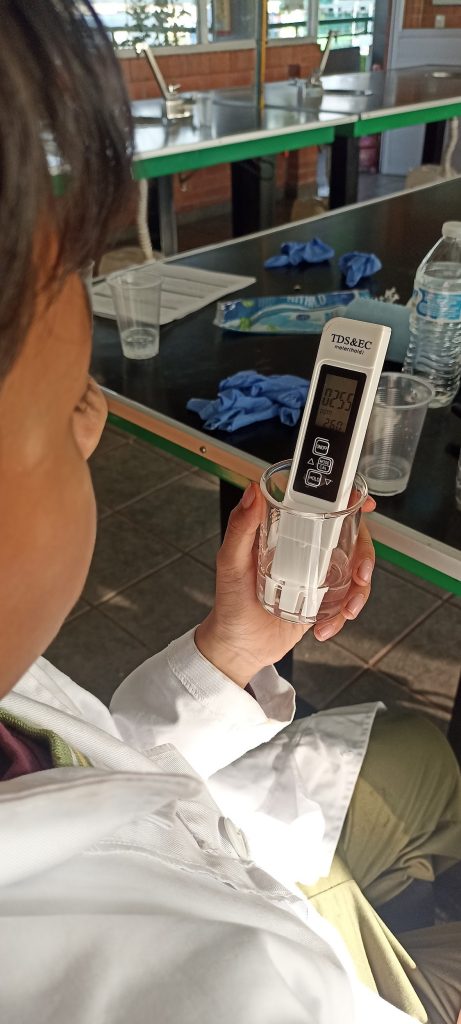 6. Encender el medidor de partículas y sumergirlo en la muestra.